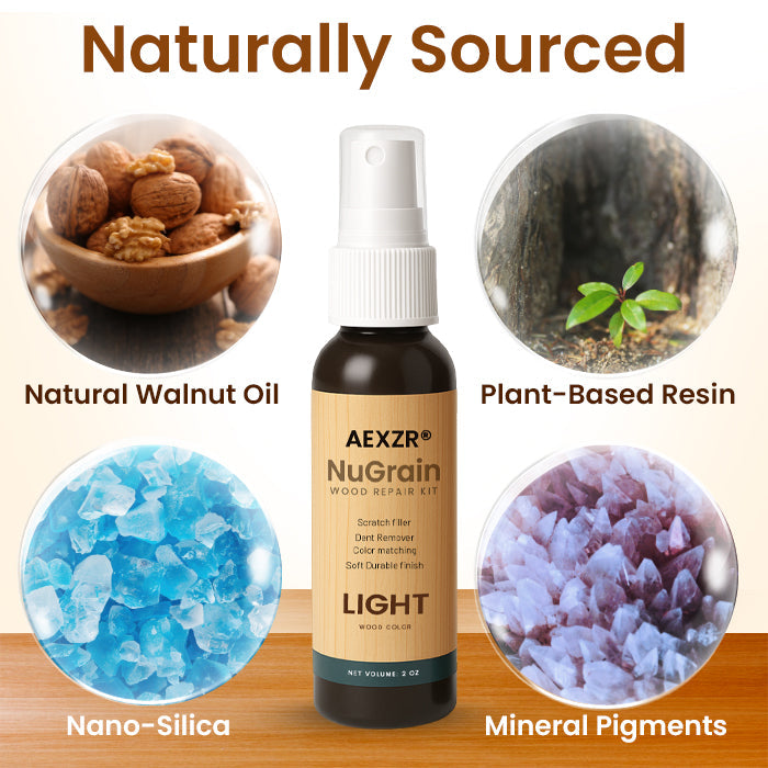 AEXZR® NuGrain Wood Repair Kit doesn't just cover scratches—it rebuilds the wood from within using our proprietary "Nano-Wood Fiber" formula. It's literally using wood to heal wood.